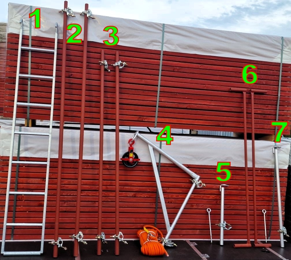 Opis: Kompletny zestaw do transportu materiałów na wysokość.